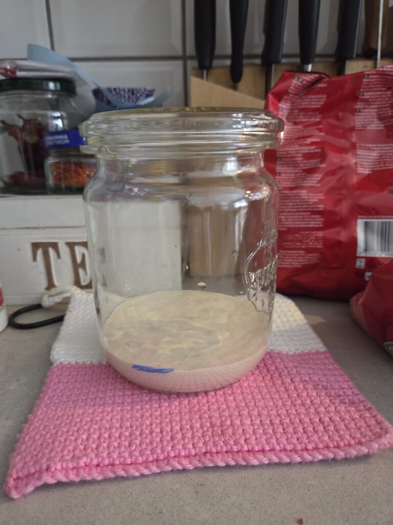 11.00 har matat min surdeg, förhoppningsvis kan jag baka med den i helgen.